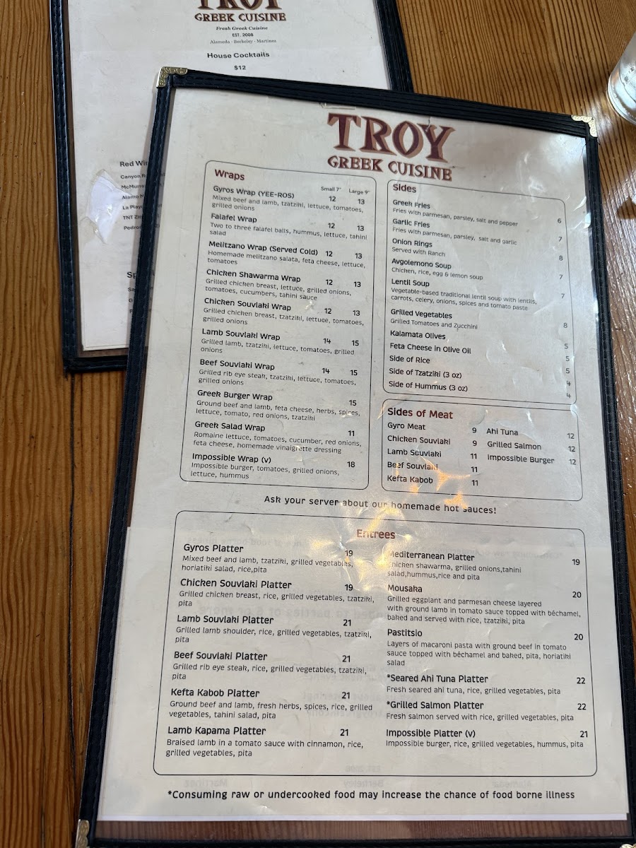 Troy - Alameda Menu