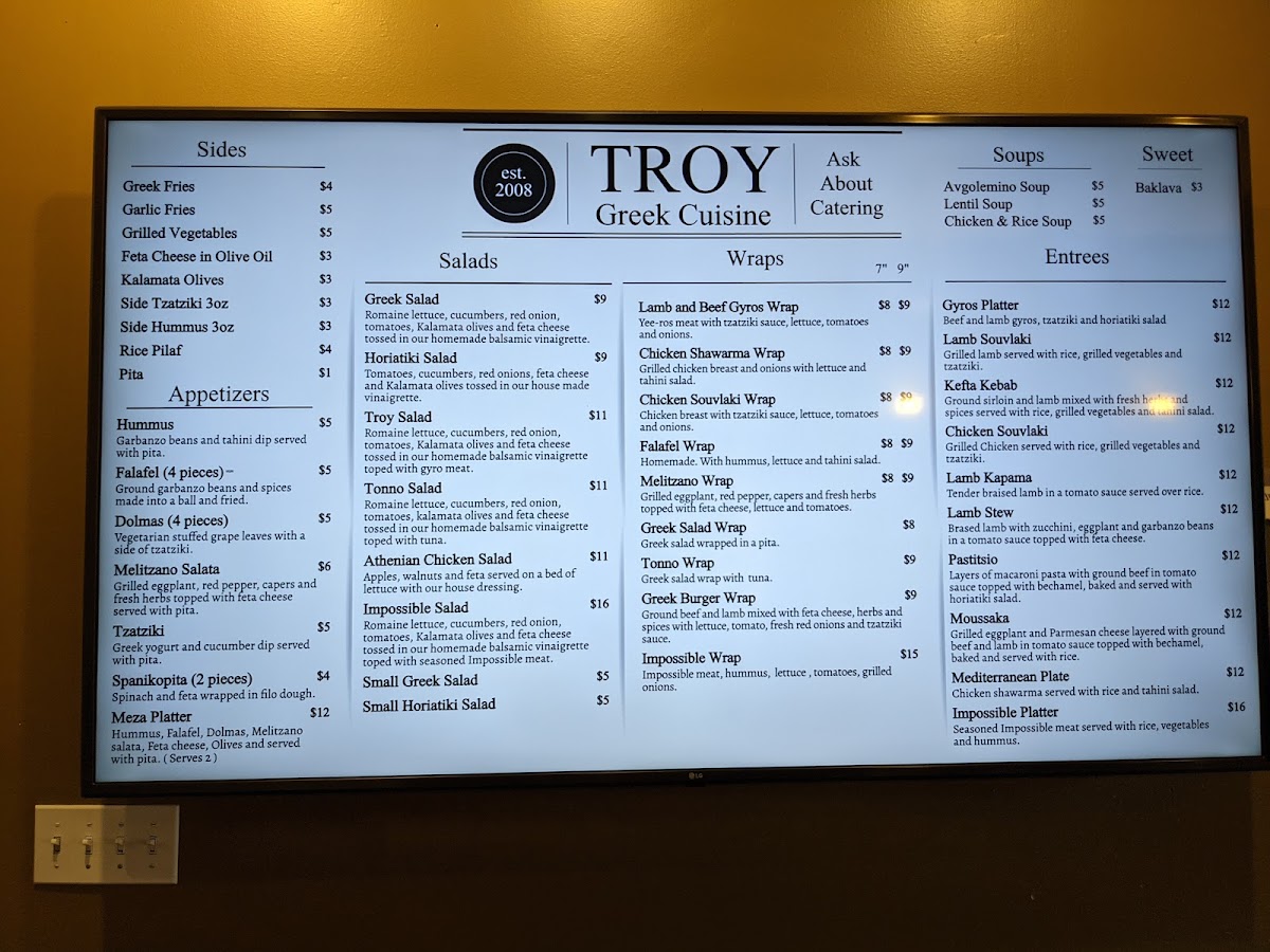 Whether dropping by for a casual lunch or enjoying a calm evening meal, Troy’s menu provides a sense of familiarity and satisfaction, making each visit feel like a quiet moment to savor Mediterranean flavors in a welcoming space.